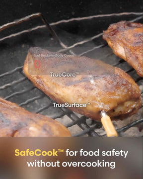 Keep your food safe and delicious!SafeCook™ tracks time at temps and tells you exactly when your food is safe to eat. No need to overcook “just to be sure.”