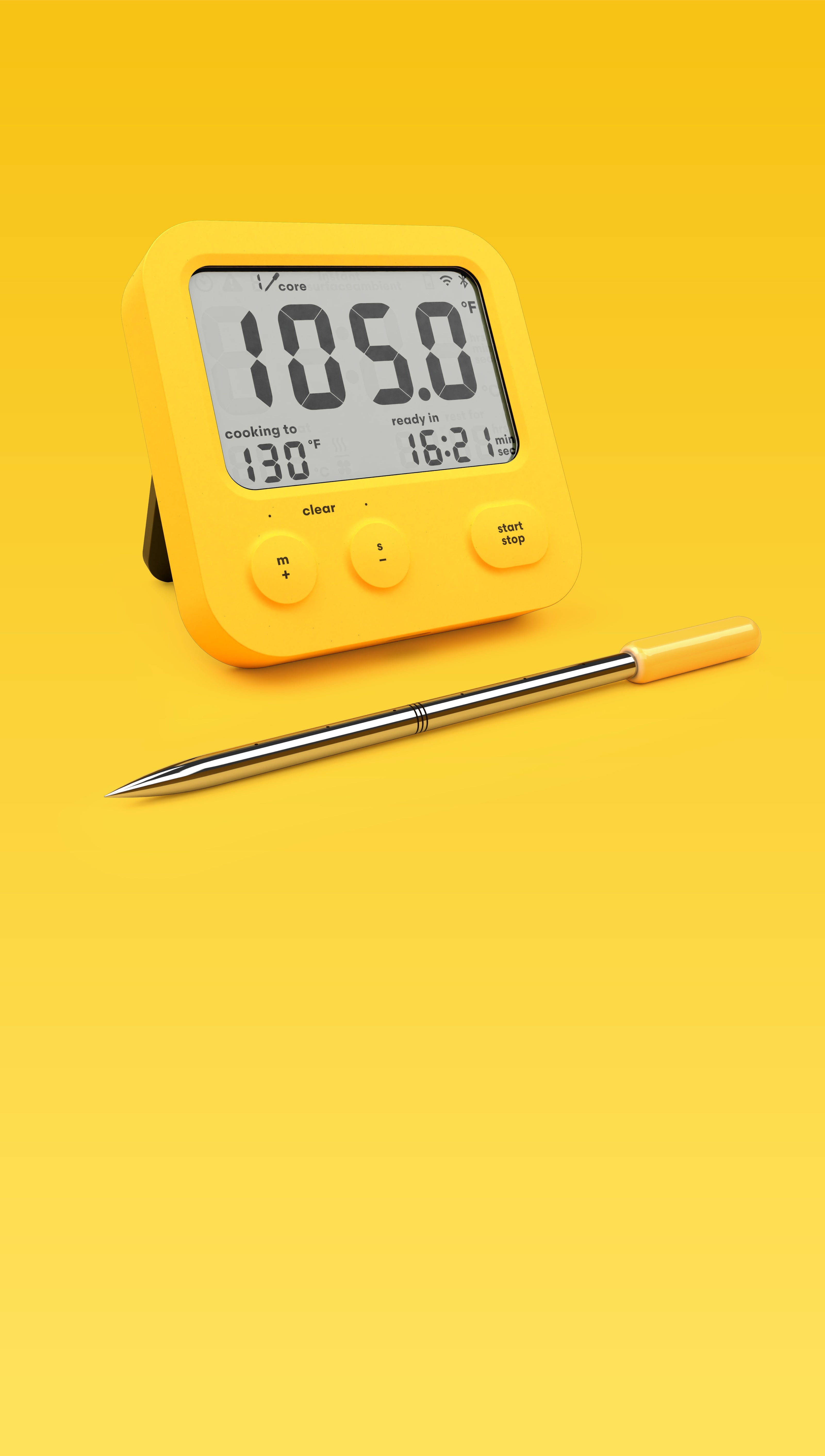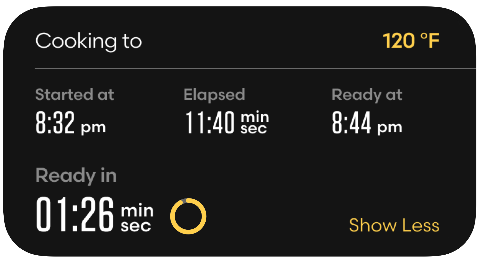 Perfect timing.Simply enter a target temp—in a few minutes you’ll get a countdown that tells you exactly when your food will be ready.