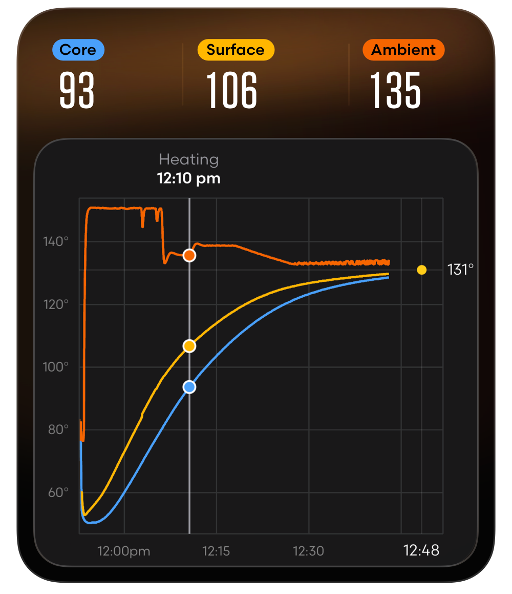 Visualize better cooking.Take a closer look at the graph to really understand how heat is flowing and perfect your cooking technique.