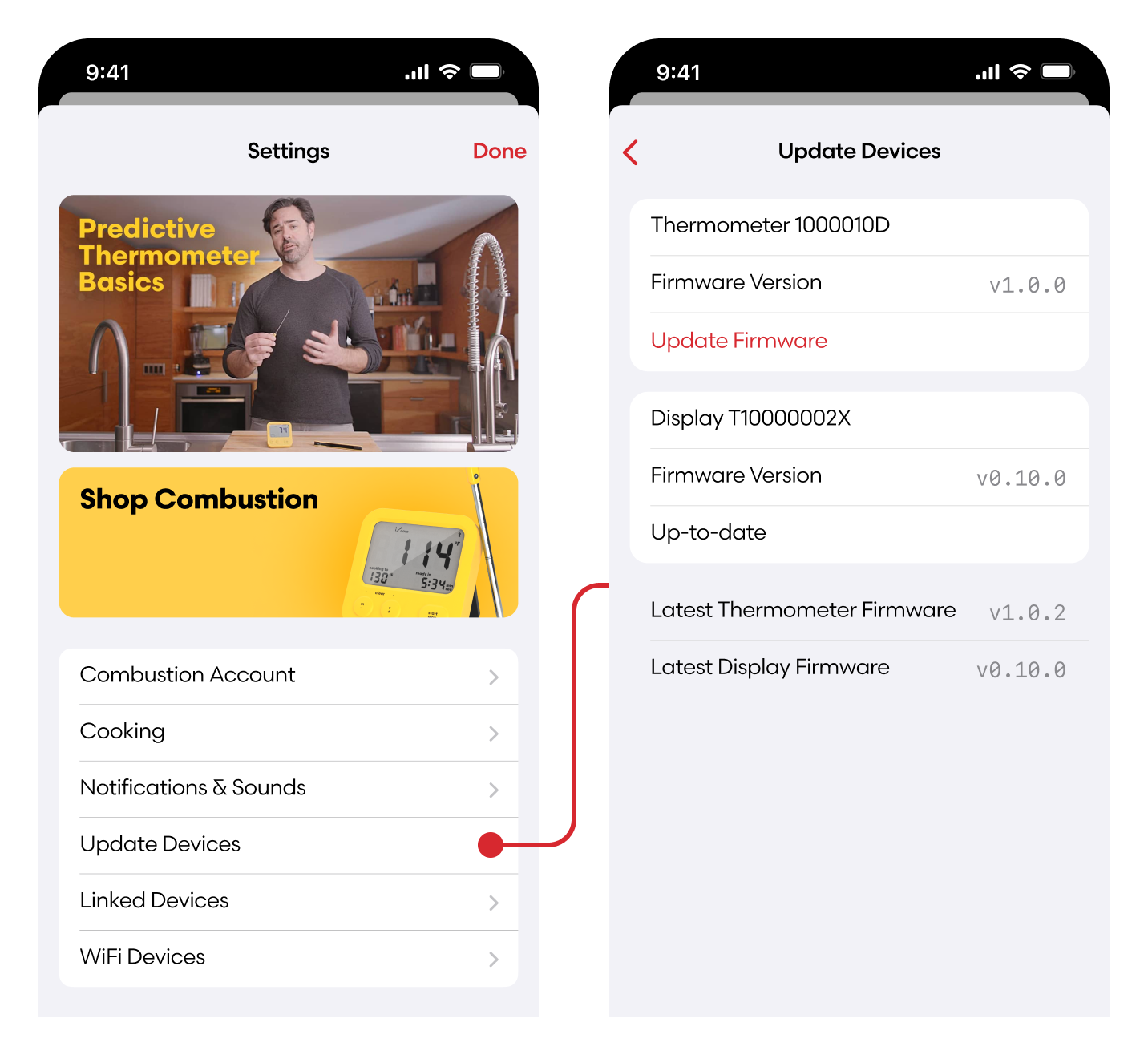 - Follow in-app instructions for linking Combustion Predictive Thermometers (CPTs) to your account