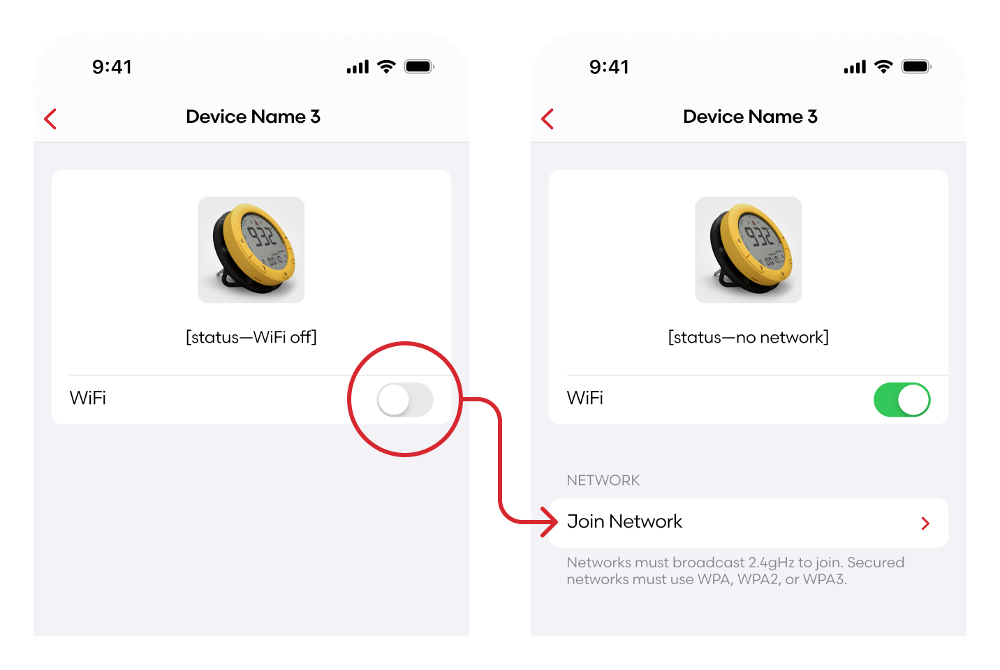 Help, I can’t join my network!Basic router/wifi troubleshootingTo join, networks must broadcast 2.4 gHz to join. Secured networks must use WPA, WPA2, or WPA3. Be sure that you are signed in to MeatNet Cloud and that you verified your email (if you are using email ID). If not, you may see weird/misleading error messages coming from your router.
