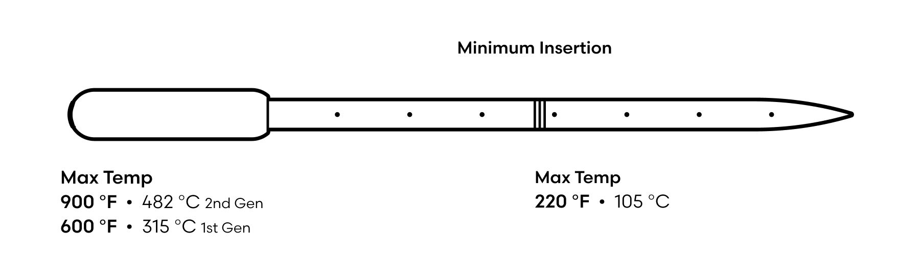 Keep the lower sensors (below the minimum insertion line) under the safe limit of 220ºF (105ºC). This is easily done if all lower sensors are inside the food - the water in the food keeps the temperature at or below boiling.